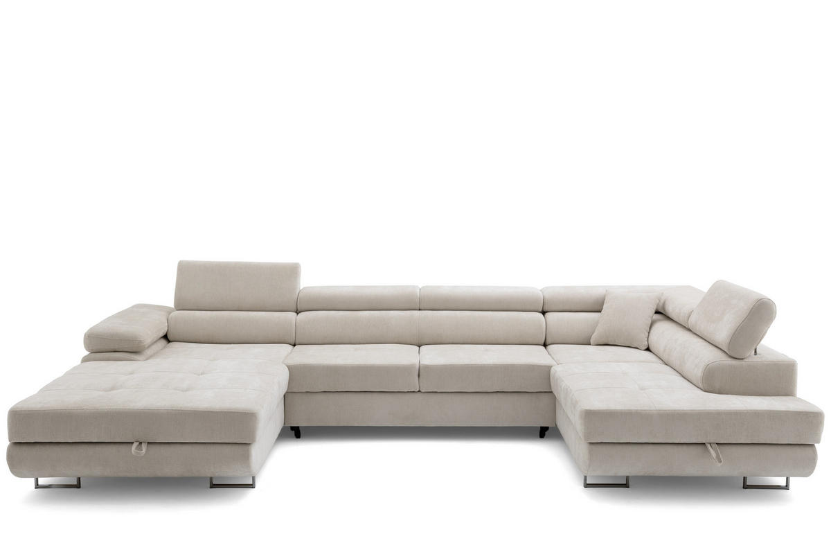 Lumo 55 (Beige) Chenille-Bezug sorgt für eine edle, zeitlose Optik und liegt angenehm weich in der Hand. Schlaffunktion, integrierte Bettkasten und stufenweise verstellbare Kopfstützen machen das