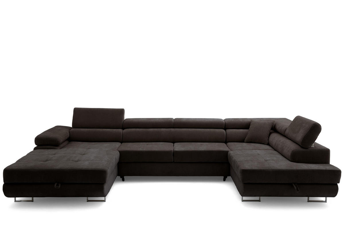 Lumo 40 (Dunkelbraun) Chenille-Bezug sorgt für eine edle, zeitlose Optik und liegt angenehm weich in der Hand. Schlaffunktion, integrierte Bettkasten und stufenweise verstellbare Kopfstützen machen das