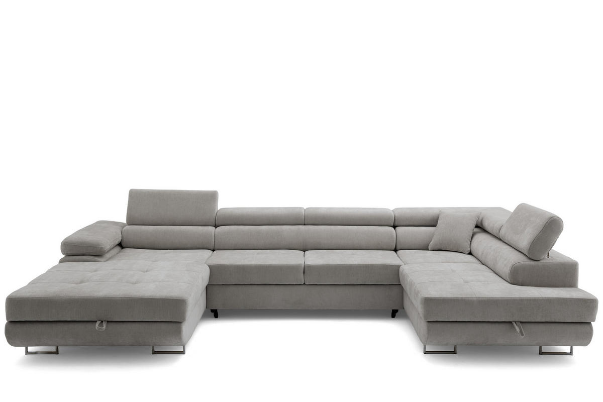 Lumo 70 (Grau) Chenille-Bezug sorgt für eine edle, zeitlose Optik und liegt angenehm weich in der Hand. Schlaffunktion, integrierte Bettkasten und stufenweise verstellbare Kopfstützen machen das