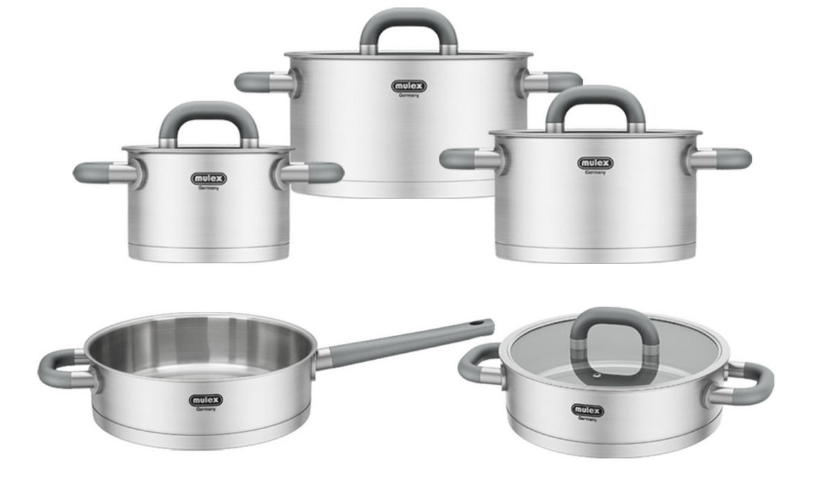 Das Set mit den handlichen und eleganten Silikon-Soft-Touch Griffen besteht aus drei unterschiedlich großen Töpfen + der Stielpfanne und Servierpfanne, die Sie auf allen herkömmlichen Herdarten, auch auf Induktion, nutzen können. Alle Töpfe und die Pfannen bestehen aus hochwertigem, matt gebürstetem Edelstahl- welche durch ihre haptische Qualität und hochattraktive Wirkung bestechen.