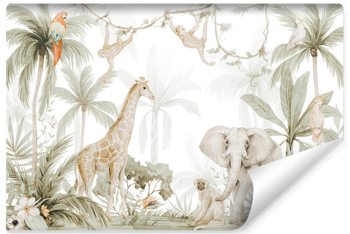 Muralo FOTOTAPETE für Kinder wilde TIERE tropische Pflanzen Retro 405x270cm
