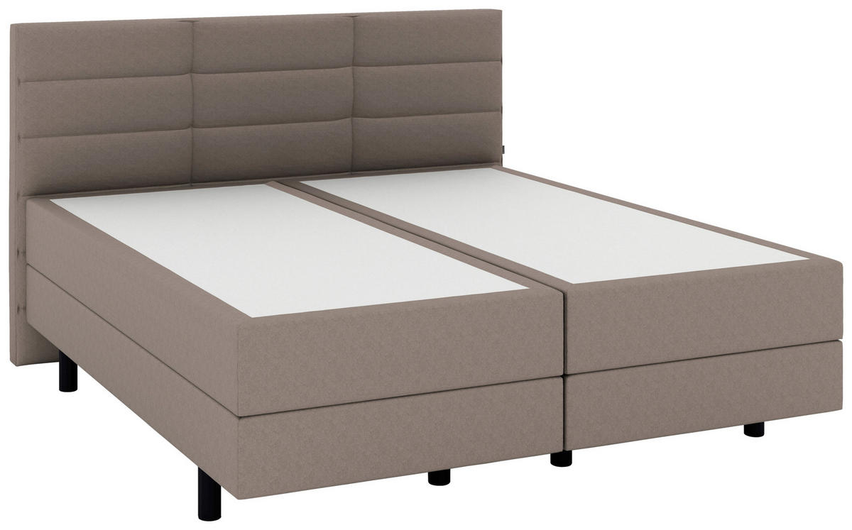 Schwarz werten das Design stylish auf und schaffen offene Bodenfreiheit. In diesem MUSTERRING Boxspringbett (ca. 200 x 200 cm) in Hellbraun mit Matratzen und gepolstertem Kopfteil ist Relaxen angesagt – gönnen Sie sich Ihre ganz persönliche Me-Time-Zone!