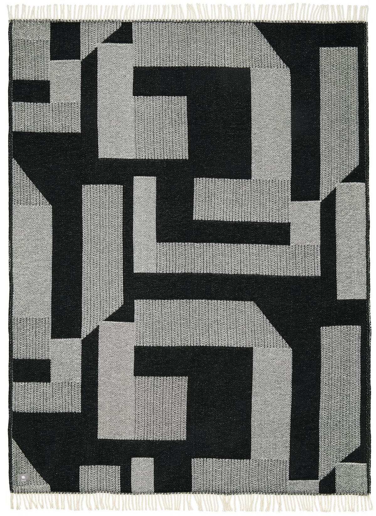 Entdecken Sie die stilvolle Musterring Decke / Plaid Slow in elegantem Schwarz, die in jeder Hinsicht ein echtes Highlight für Ihr Zuhause darstellt. Mit den großzügigen Maßen von 140x200cm bietet diese Wohndecke nicht nur eine kuschelige Wärme, sondern auch ein außergewöhnliches Design, das zweifarbig gewebt ist. Das platzierte, grafische Muster ist ein Blickfang und verleiht jedem Raum eine moderne Note. Die Decke ist aus hochwertigen Materialien gefertigt und sorgt dank ihrer weichen Textur für ultimativen Komfort. Besonders ansprechend sind die langen Fransen, die den kurzen Seiten der Decke einen Hauch von Verspieltheit verleihen.