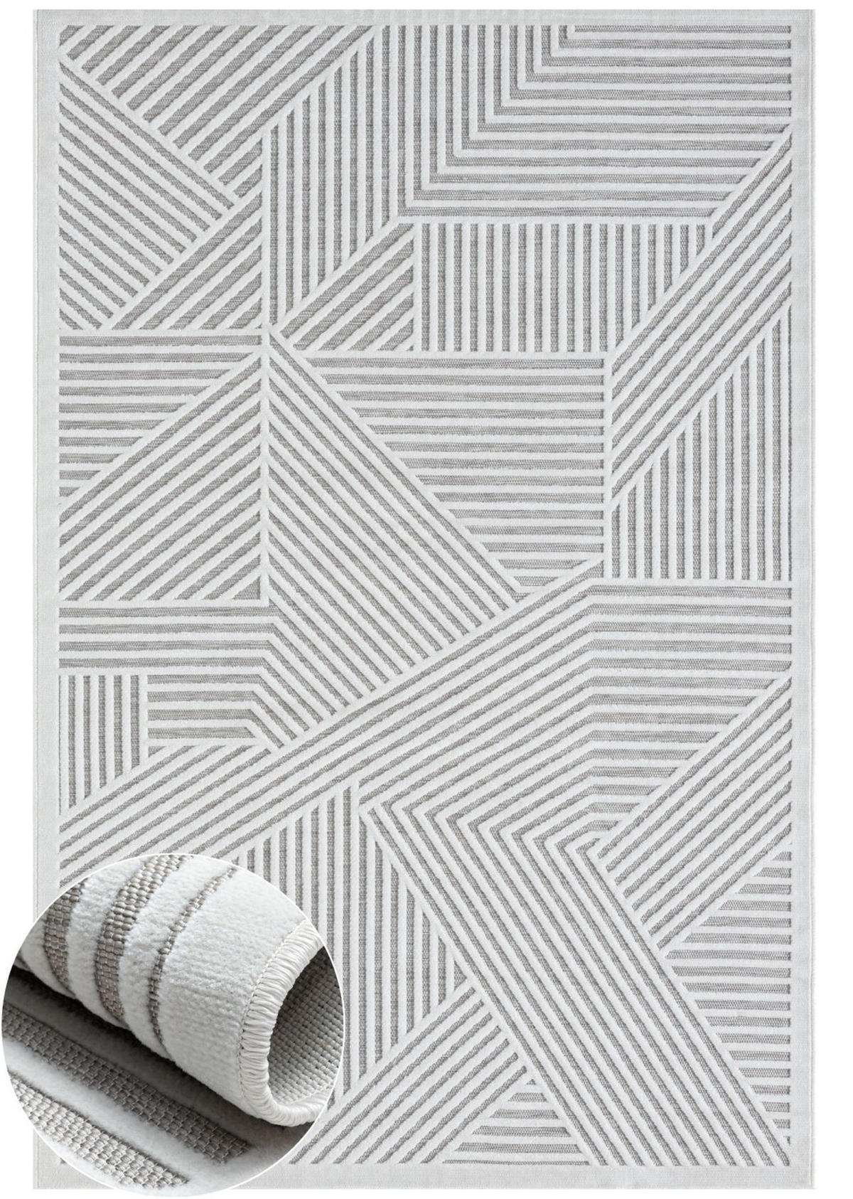 Die Teppichserie Audrey überzeugt mit einem modernen, geometrischen Linienmuster in Grautönen – ein stilvoller Blickfang für minimalistische oder urbane Wohnkonzepte. Das raffinierte Spiel aus diagonalen Streifen verleiht dem Teppich eine faszinierende optische Tiefe und Struktur.