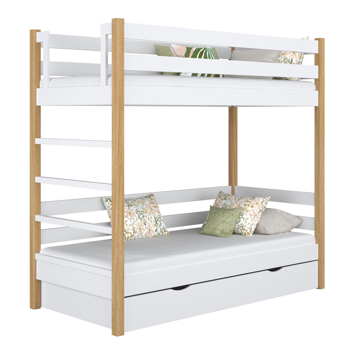 N-Wood ETAGENBETT N03 mit Schublade Weiß / Eiche Natur 90/200