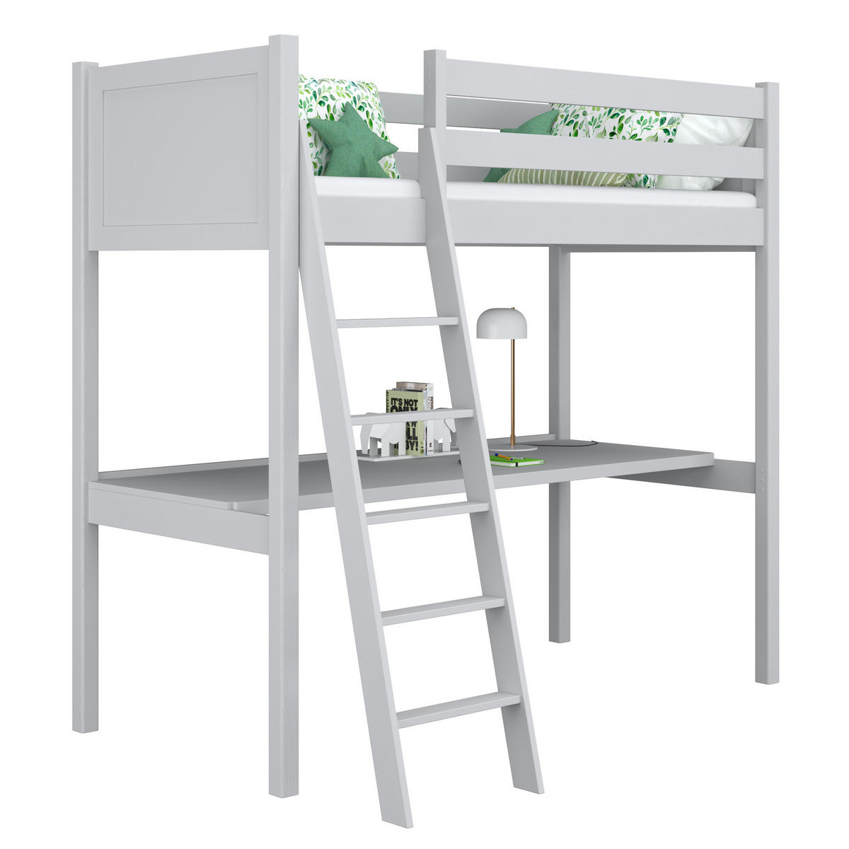 Das Holz-Hochbett von N-Wood mit Schreibtisch ist die ideale Lösung, um den verfügbaren Raum optimal zu nutzen.