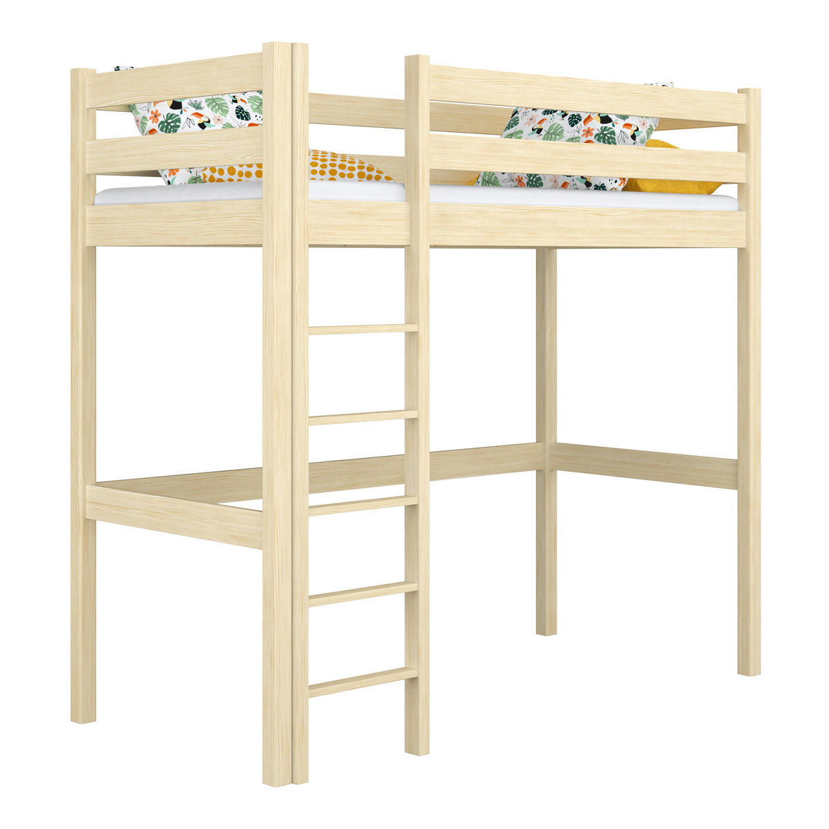 Das Hochbett aus Holz ist sowohl mit als auch ohne Schreibtisch erhältlich, sowie in vielen Farbvarianten, die Sie in unseren anderen Angeboten finden können.