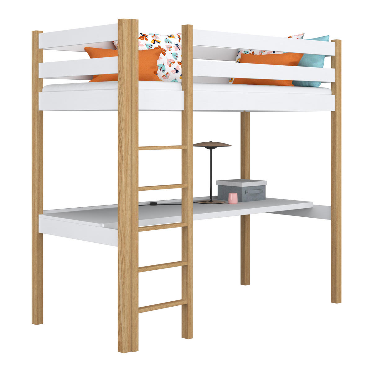 Das Holz-Hochbett von N-Wood mit Schreibtisch ist die ideale Lösung, um den verfügbaren Raum optimal zu nutzen.