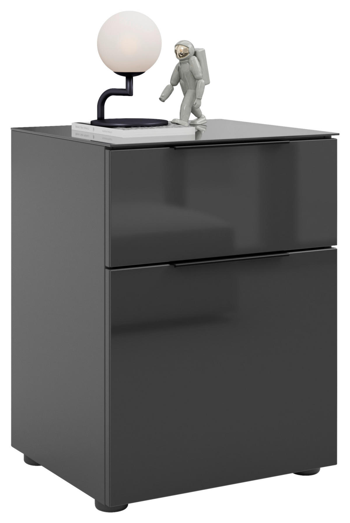 NACHTSCHRANK 45/60/40 cm  - Anthrazit/Anthrazit Hochglanz, Basics, Glas/Holzwerkstoff (45/60/40cm)