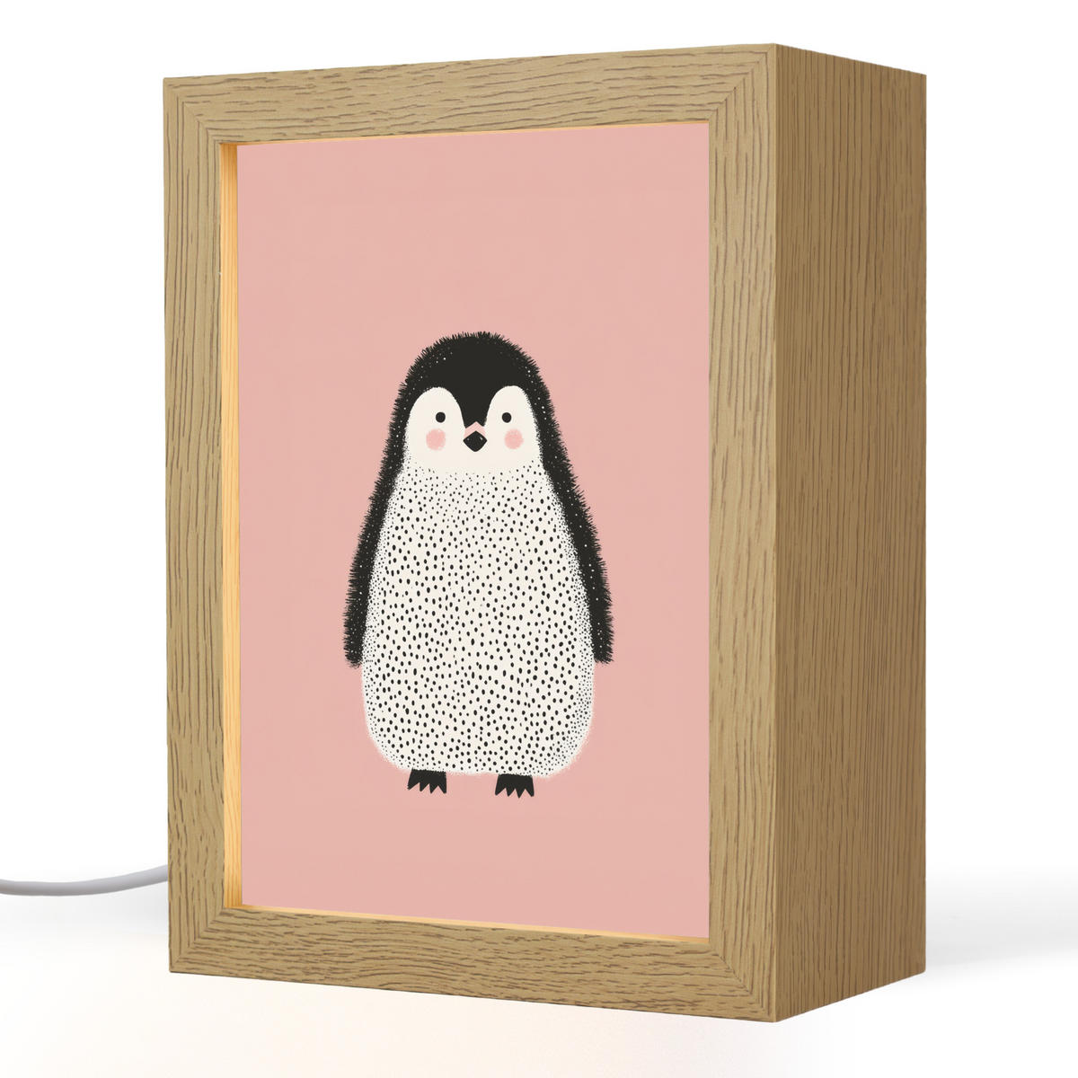Einzigartiges Design & Perfektes Licht für Kinderzimmer Verwandeln Sie das Kinderzimmer in eine Oase der Ruhe. Diese Lightbox kombiniert modernes Design mit sanfter Beleuchtung und ist ein dekoratives Highlight, das kleine Entdecker begeistert. Perfekte Lichtstimmung für jede Situation Dank des intuitiven Bedienpanels passen Sie die Helligkeit stets optimal an. Nutzen Sie die stufenlose Dimmfunktion oder 6 voreingestellte Stufen – ideal zum Stillen oder als dezente Nachtbeleuchtung. Die Lichtfarbe ist von behaglichem Warmweiß (2700K) bis zu hellem Kaltweiß (6500K) einstellbar, um immer die perfekte Atmosphäre zu schaffen. Natürliches Design trifft auf moderne LED-Technik Der robuste Holzrahmen bringt Natürlichkeit ins Zimmer, während langlebige LED-Technik für Sicherheit und Effizienz sorgt. Verschiedene Bildmotive machen jedes Nachtlicht zu einem individuellen Hingucker. Einfache Wandmontage Ihr Nachtlicht wird mit integriertem Kabel und Aufhängesystem geliefert. Die Montage ist kinderleicht – für sofortige Geborgenheit und süße Träume.