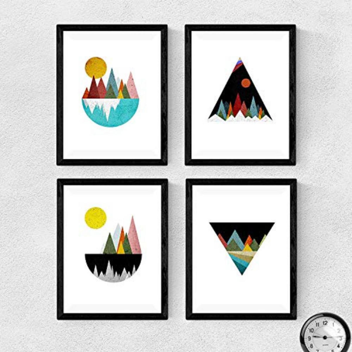 Nacnic POSTER Set mit 4 bunten Berg im Rot und Blautönen A4 Schwarzer Rahmen