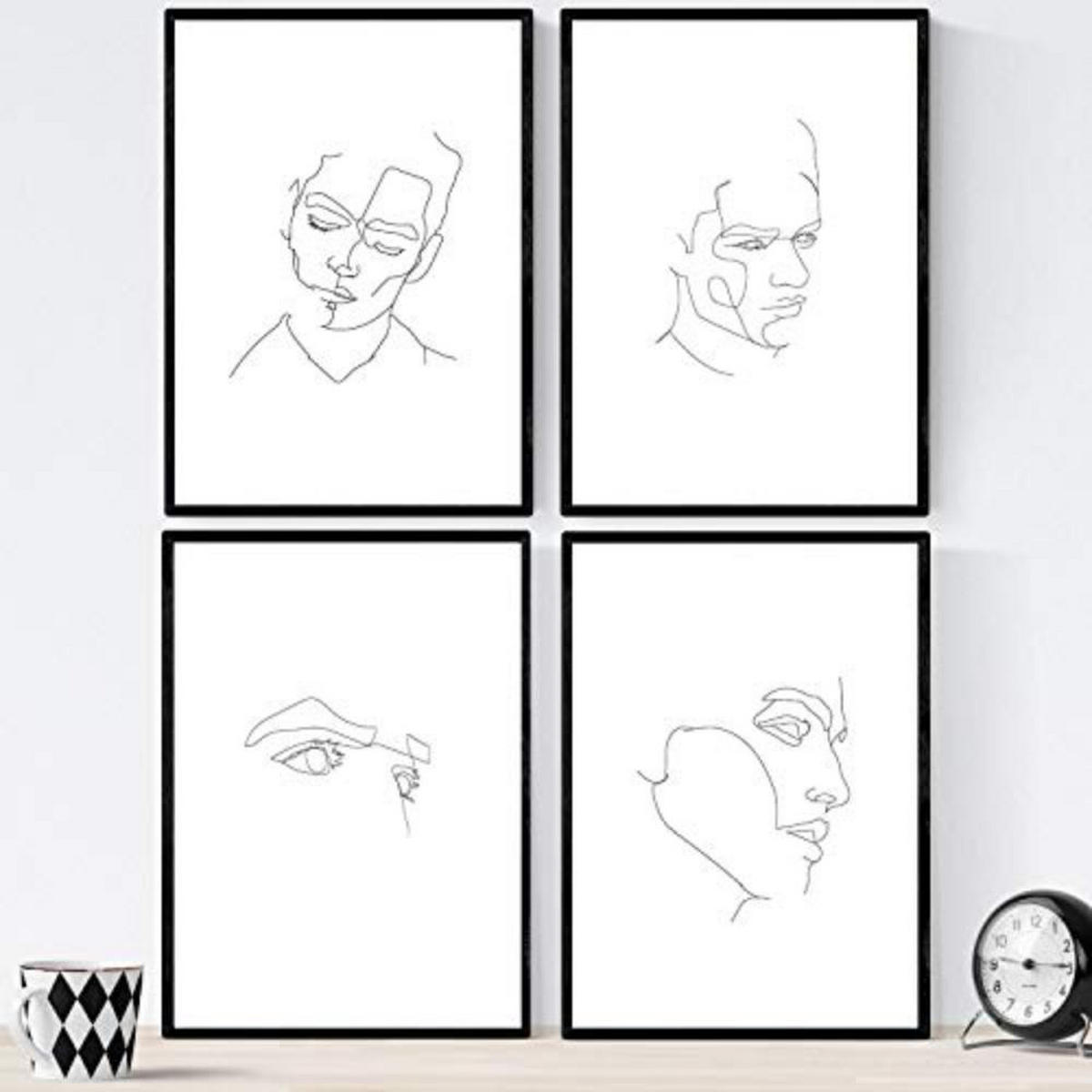 Nacnic POSTER Set mit 4 Gesichter Mann A3 Schwarzer Rahmen