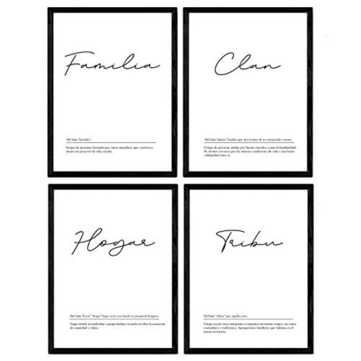 Nacnic POSTER Set mit 4 Wortdefinitionen für Familienweiß A3 Schwarzer Rahmen