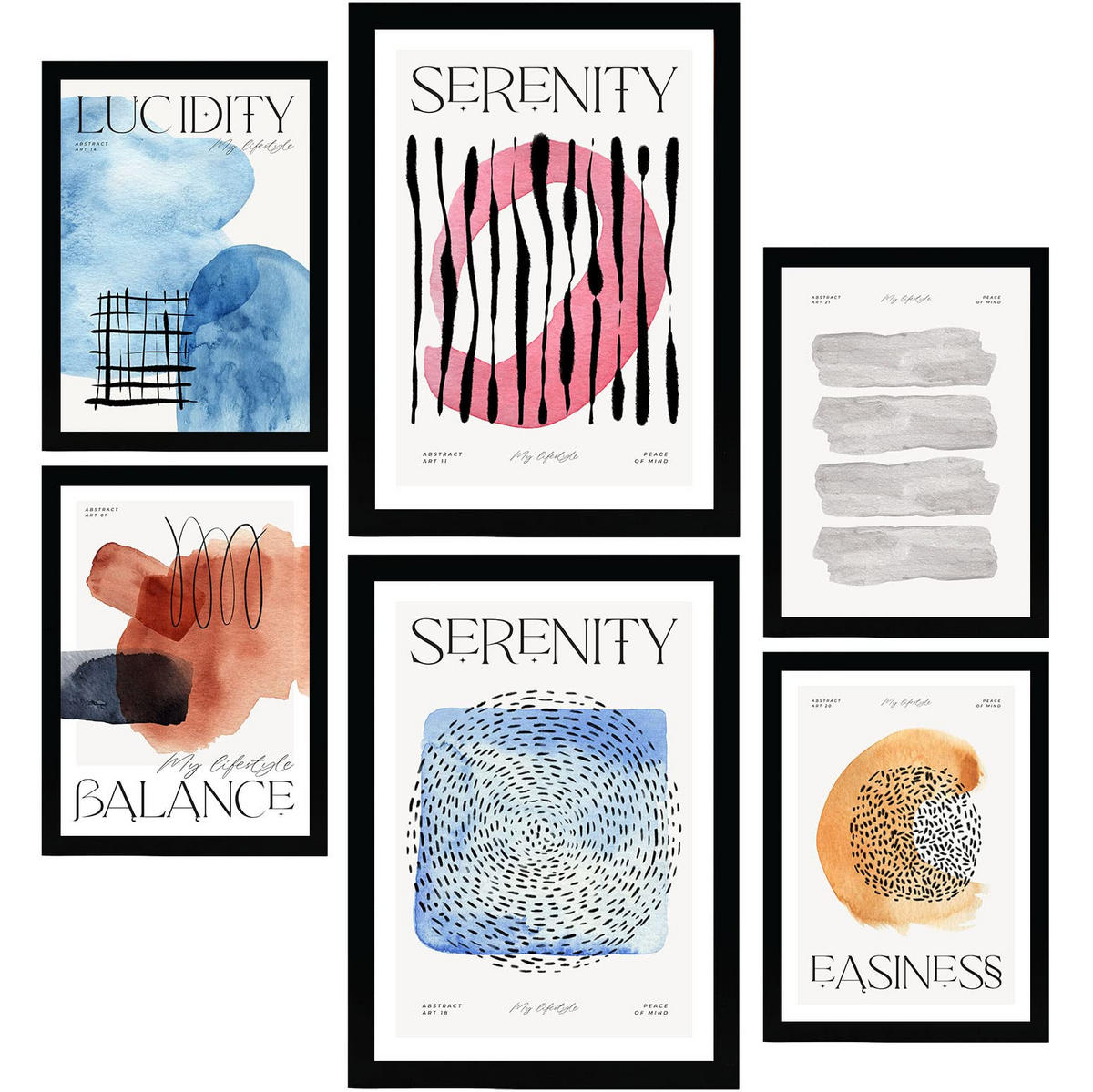 Nacnic POSTER Set Mit 6 Abstrakte Ruhig Plakate Mit Ästhetischer Kunstausstellung Vollfarbige Illustrationen Für A3 & A4 Rahmen Aus Hellem Holz