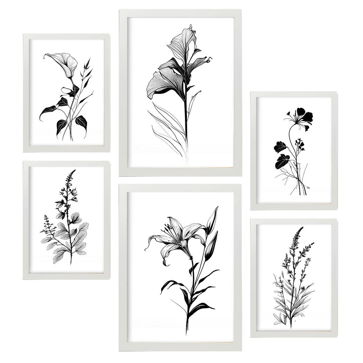 POSTER Set Mit 6 Ansteckblumen Natur Und Botanikdrucke Mit Blumenmotiven In Klassischem Schwarz Und Weiß Innenarchitektur A3 & A4 Weißer Rahmen - Weiß, Papier (29/3cm) - NacnicNacnic