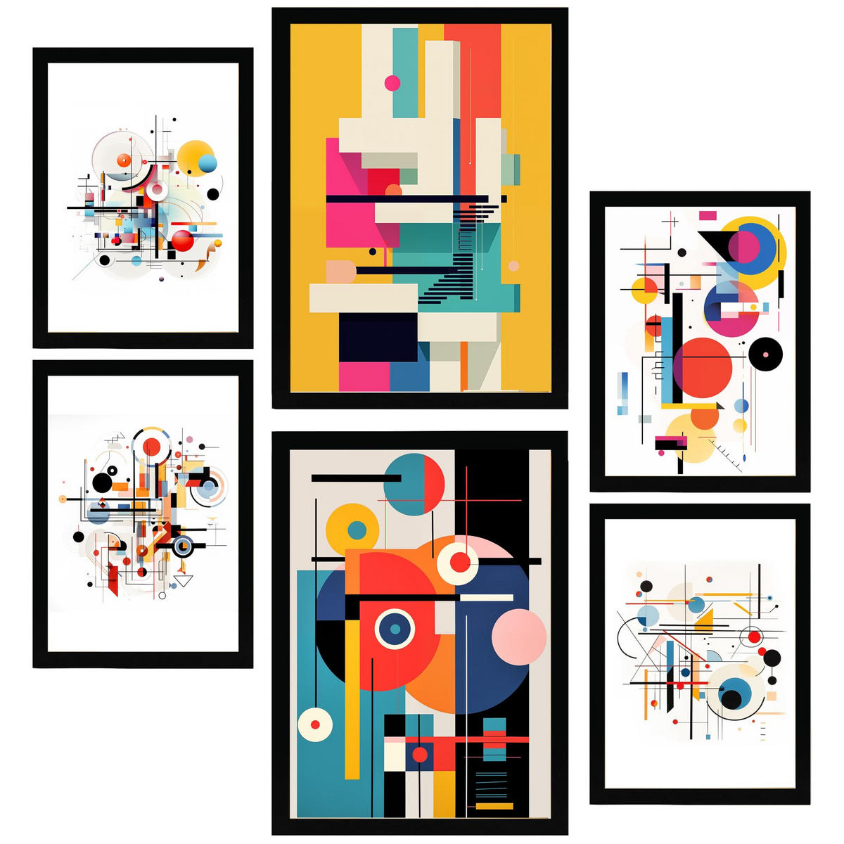 Nacnic POSTER Set Mit 6 Bauhaus Rotblau Gelb A3 & A4 Schwarzer Rahmen