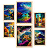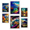 POSTER Set Mit 6 Berge Im Ölgemälde Stil A3 & A4 Rahmen Aus Hellem Holz - Beige, Papier (29/3cm) - Nacnic