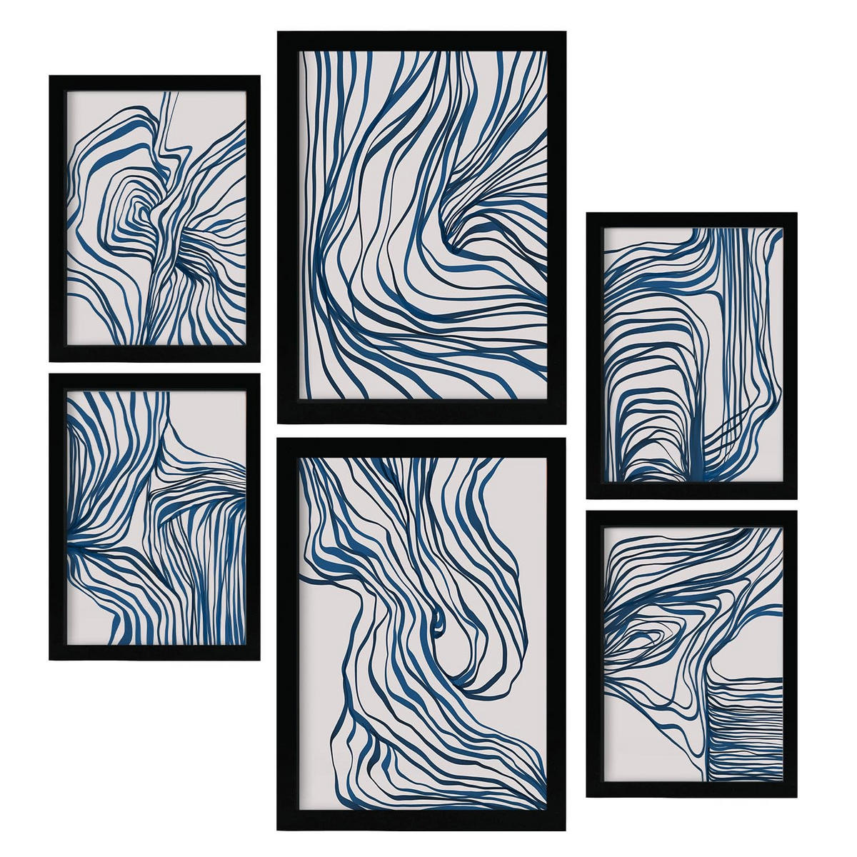 POSTER Set Mit 6 Bezaubernde Schnur In Form Abstracts Ästhetische Dekorative Gemälde Für Ihr Wohnzimmer Schlafzimmer Zuhause A3 & A4 Schwarzer Rahmen - Schwarz, Papier (29/3cm) - NacnicNacnic