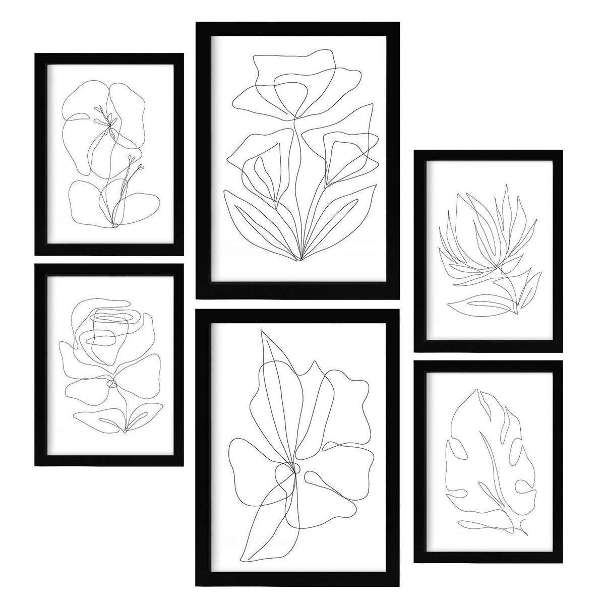 POSTER Set Mit 6 Blütenrahmen 2 In Blume Zusammenfassung Ästhetische Dekorative Gemälde Für Ihr Wohnzimmer Zuhause A3 & A4 Schwarzer Rahmen - Schwarz, Papier (29/3cm) - Nacnic