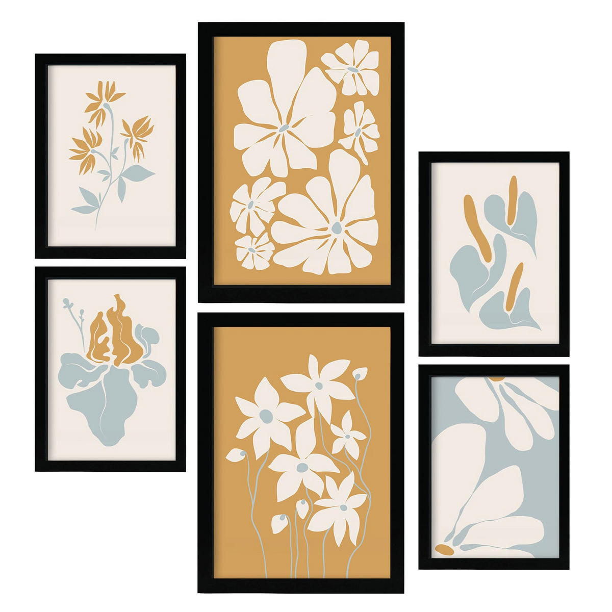 POSTER Set Mit 6 Blumenrahmen 2 In Blume Zusammenfassung Ästhetische Dekorative Gemälde Für Ihr Wohnzimmer Zuhause A3 & A4 Schwarzer Rahmen - Schwarz, Papier (29/3cm) - Nacnic