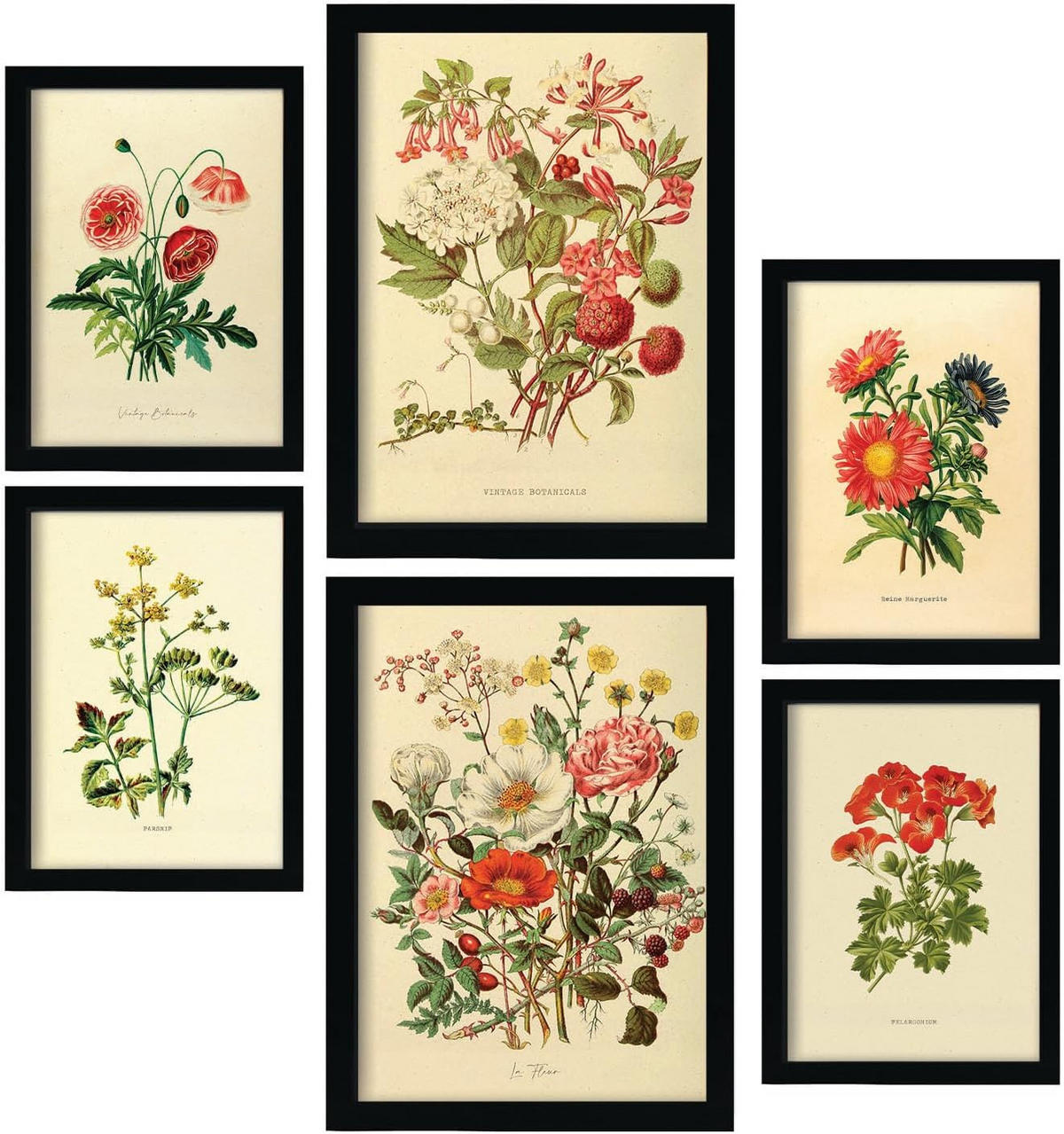 Nacnic POSTER Set Mit 6 Blumensträuße 1 In Vintage A3 & A4 Schwarzer Rahmen