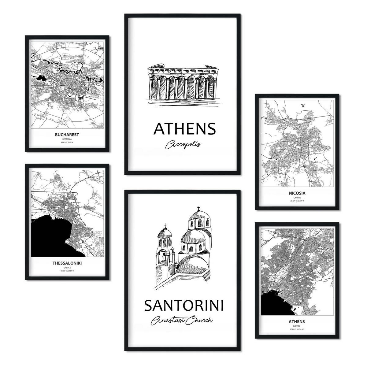 Nacnic POSTER Set Mit 6 Drucke Von Europa Von Karten In Schwarz Weiß A3 & A4 Schwarzer Rahmen