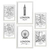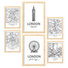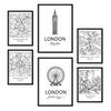 POSTER Set Mit 6 Drucke Von Uk 2 Von Karten In Schwarz Weiß A3 & A4 Weißer Rahmen - Weiß, Papier (29/3cm) - NacnicNacnic
