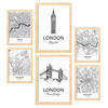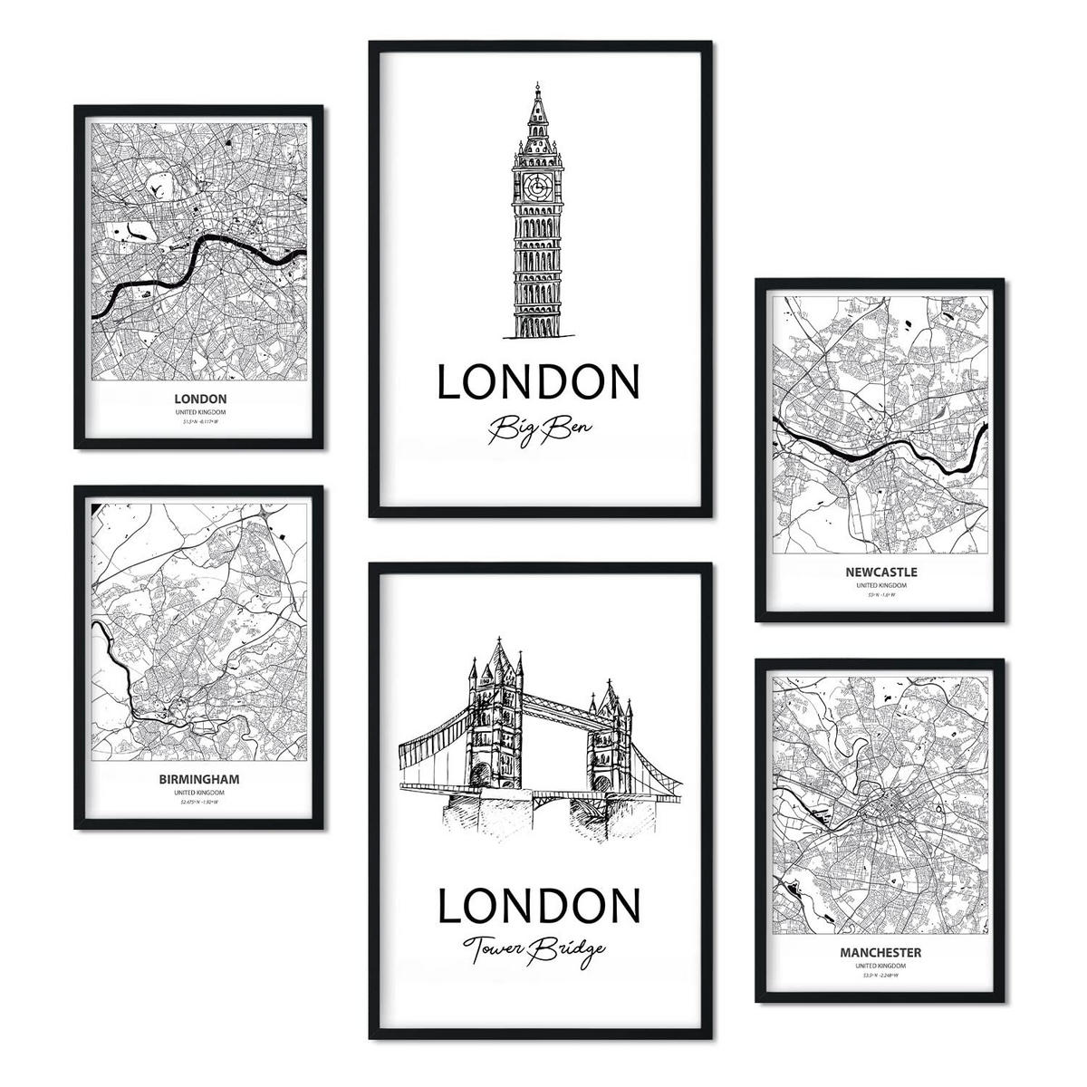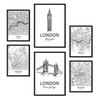 POSTER Set Mit 6 Drucke Von Uk Von Karten In Schwarz Weiß A3 & A4 Schwarzer Rahmen - Schwarz, Papier (29/3cm) - NacnicNacnic