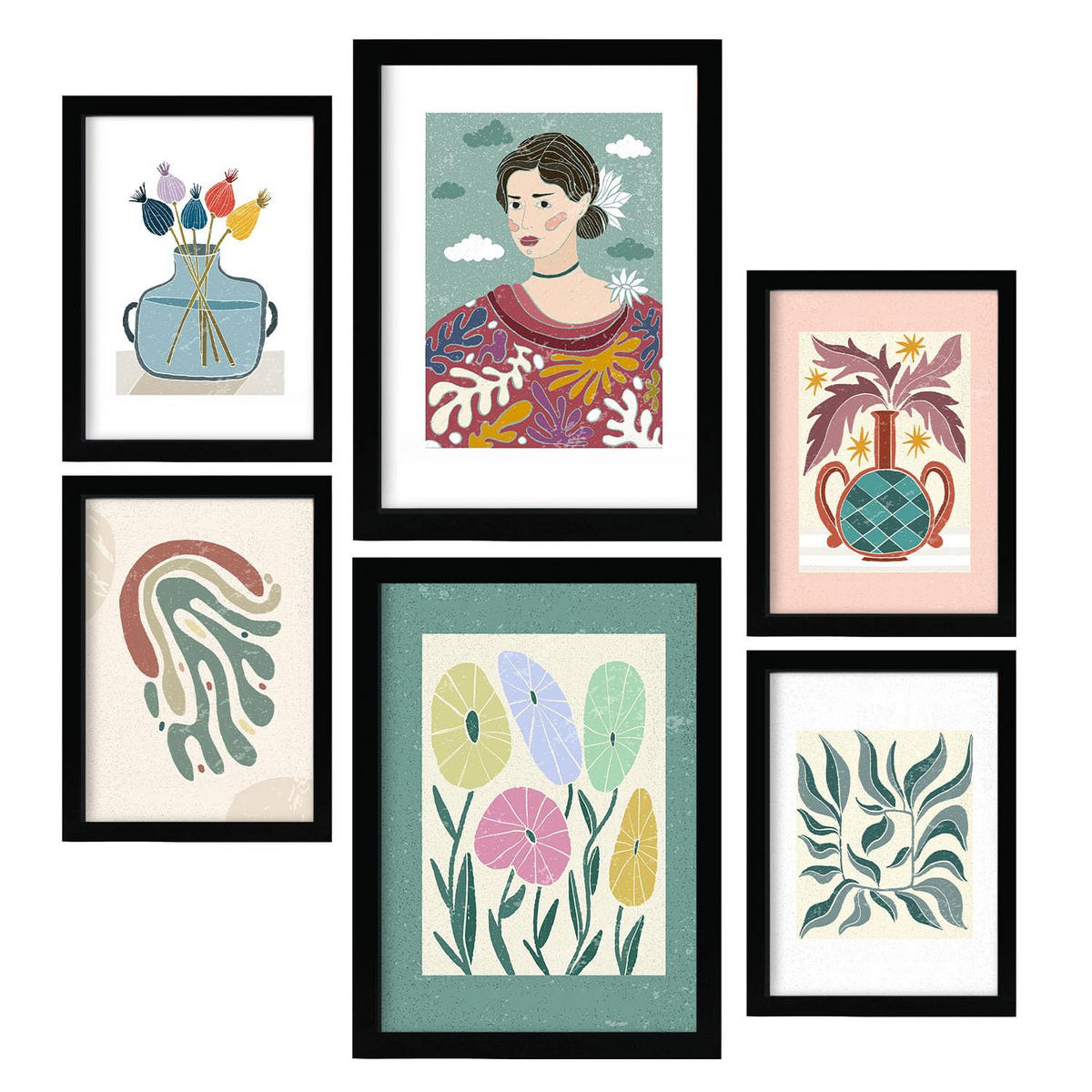 POSTER Set Mit 6 Drucken Blüten In Der Sammlung Von Ethnischenen Ästhetische Dekorative Rahmen Für Ihr Zuhause Wandkunstdruck A3 & A4 Schwarzer Rahmen - Schwarz, Papier (29/3cm) - NacnicNacnic