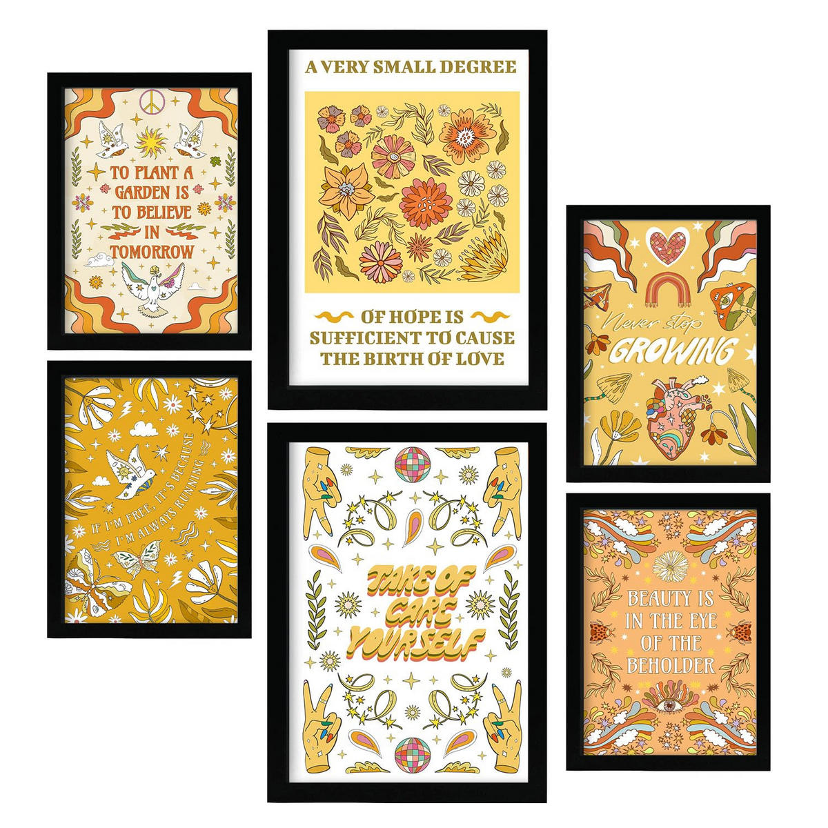 POSTER Set Mit 6 Drucken Der Selbstversorgung In Der Brillanten Groovy Dekorative Rahmen Für Ihr Zuhause Wandkunstdruck A3 & A4 Schwarzer Rahmen - Schwarz, Papier (29/3cm) - Nacnic