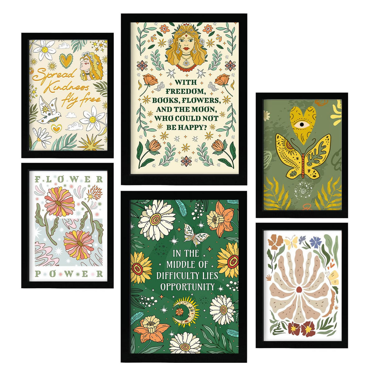 Nacnic POSTER Set Mit 6 Drucken Mit Freundlichkeit In Der Brillanten Groovy A3 & A4 Rahmenlos