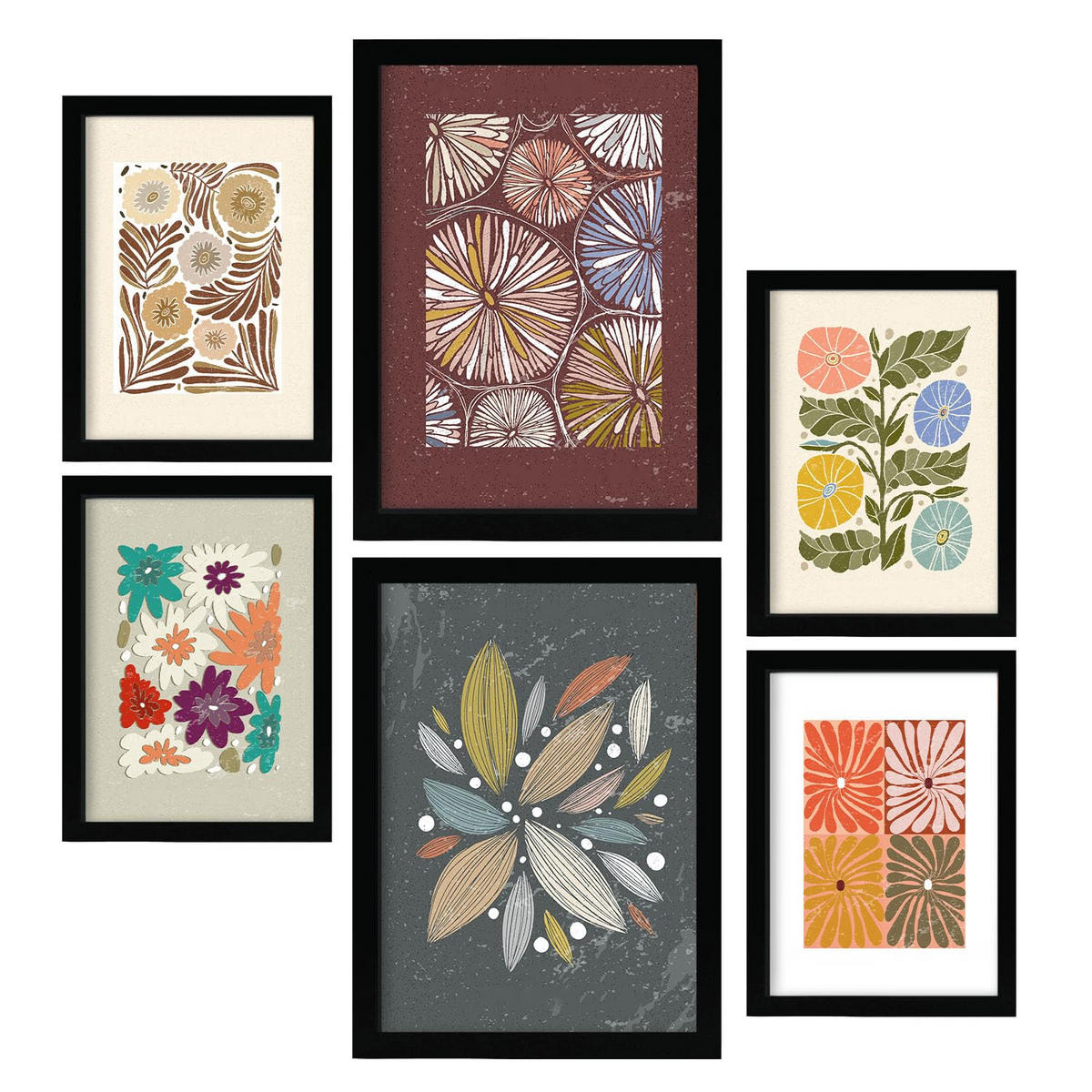 POSTER Set Mit 6 Drucken Von Blütenblättern In Der Sammlung Ethnischere Dekorative Rahmen Für Ihr Zuhause Wandkunstdruck A3 & A4 Schwarzer Rahmen - Schwarz, Papier (29/3cm) - NacnicNacnic