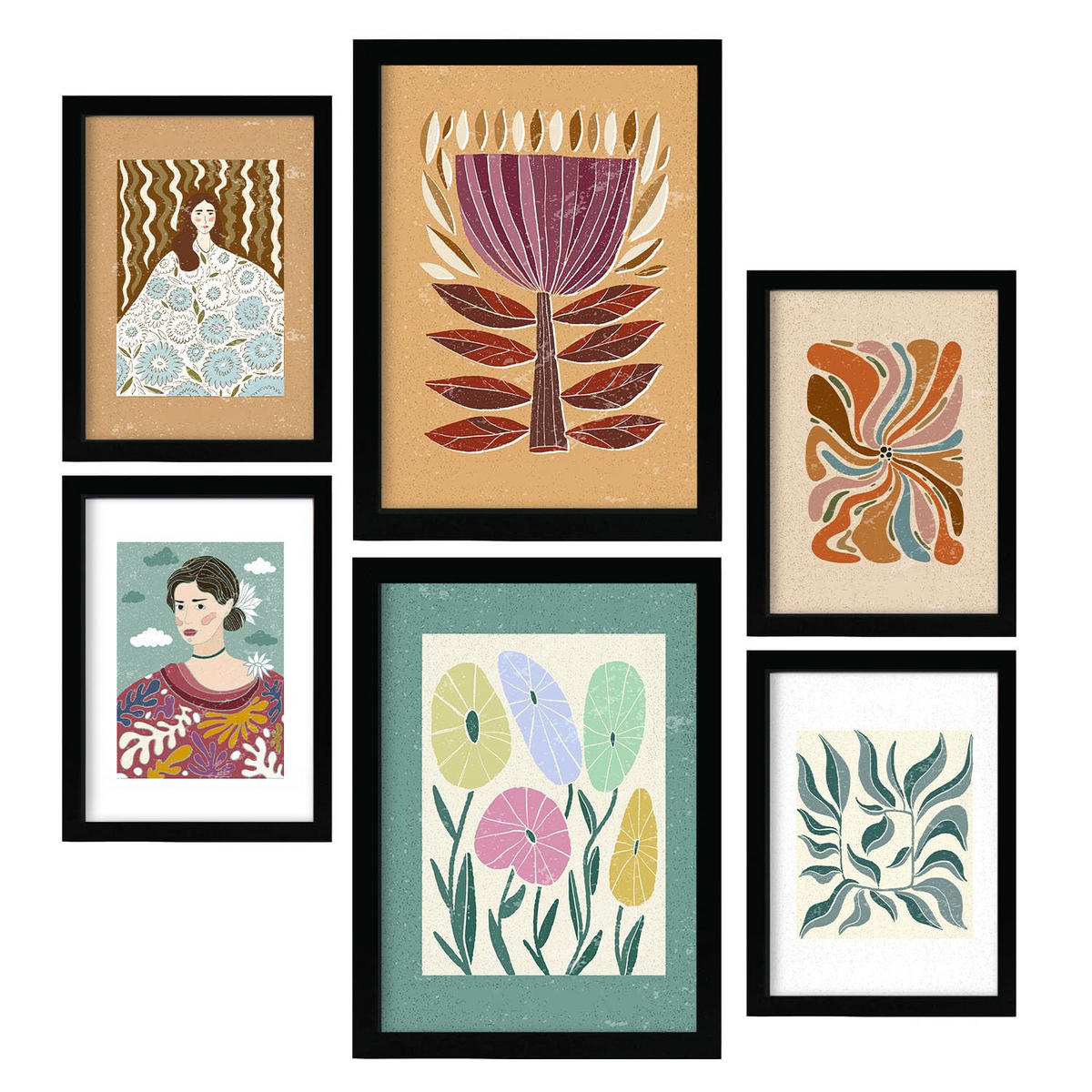 POSTER Set Mit 6 Drucken Von Blumen In Der Sammlung Ethnischere A3 & A4 Rahmenlos - Klar, Papier (29/3cm) - NacnicNacnic