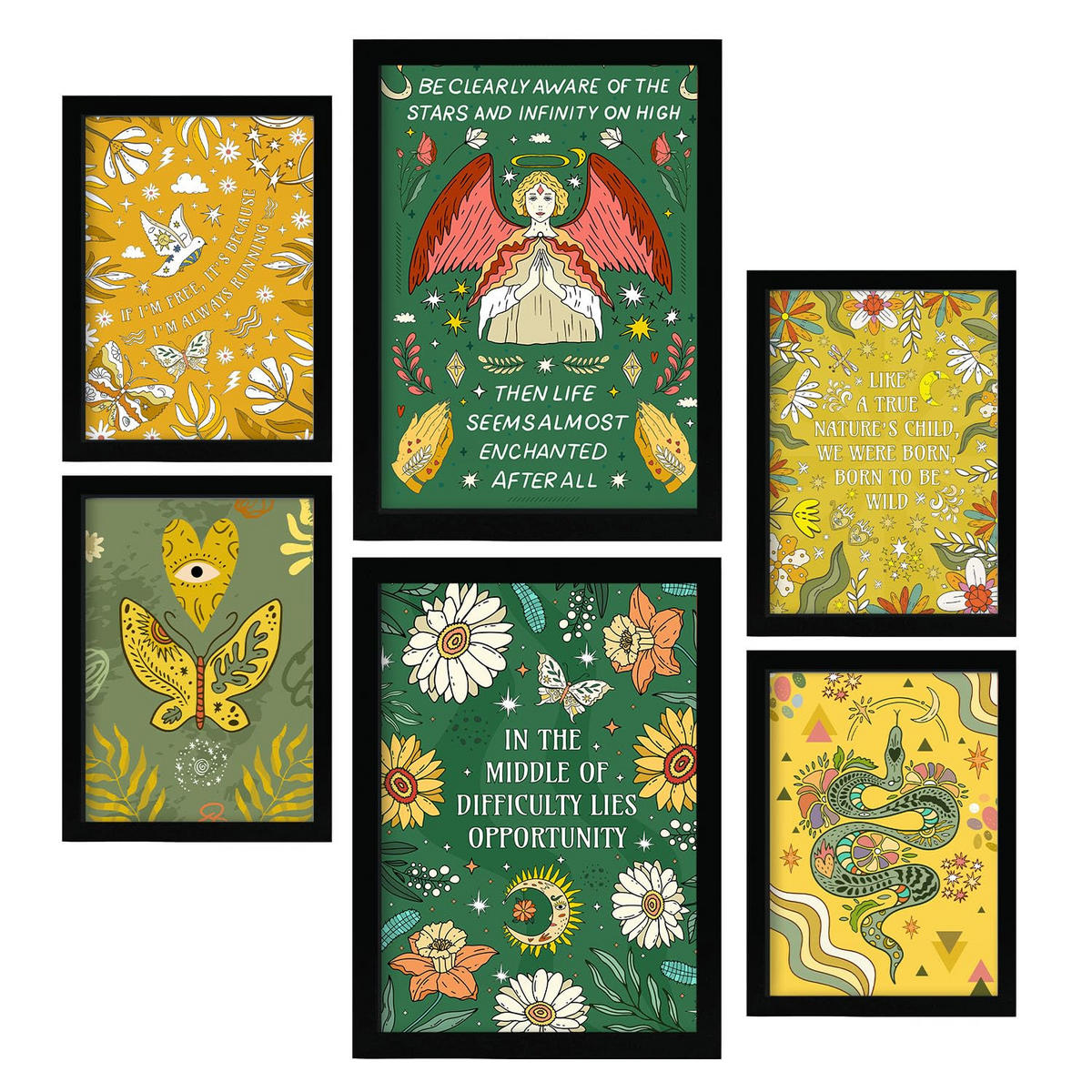 POSTER Set Mit 6 Drucken Von I'M Free In Brilliant Groovy Style Collection Dekorative Rahmen Für Ihr Zuhause Wandkunstdruck A3 & A4 Schwarzer Rahmen - Schwarz, Papier (29/3cm) - NacnicNacnic