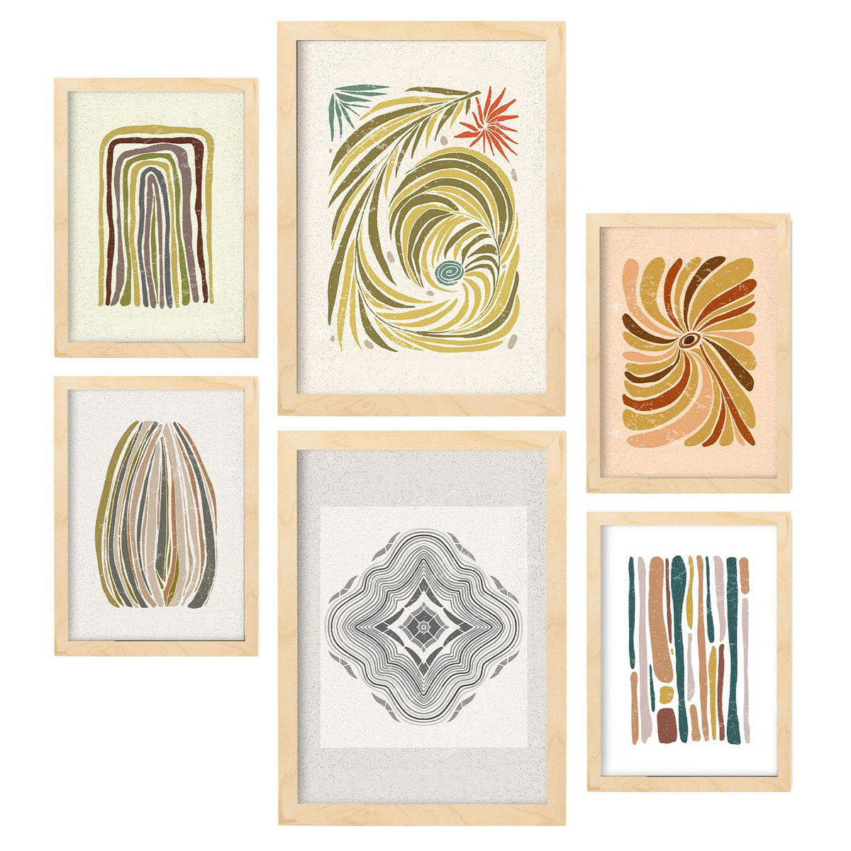 Nacnic POSTER Set Mit 6 Drucken Von Linien In Der Sammlung Von Ethnischenen Ästhetische Dekorative Für Zuhause Wandkunstdruck A3 & A4 Rahmen Aus Hellem Holz