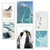 POSTER Set Mit 6 Eis In Der Antarktis Bär & Pinguine Im Türkisfarbenen Wasser A3 & A4 Weißer Rahmen - Weiß, Papier (29/3cm) - NacnicNacnic
