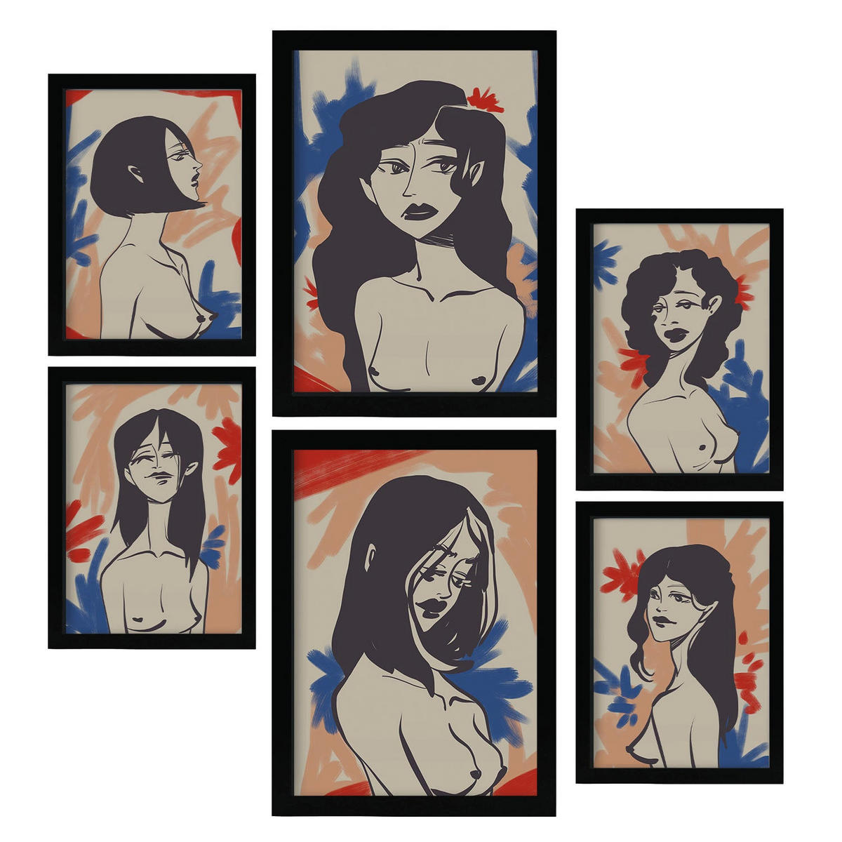 POSTER Set Mit 6 Faszinierende Schönheit In Weibliche Zusammenfassung Ästhetische Dekorative Gemälde Für Ihr Zuhause A3 & A4 Schwarzer Rahmen - Schwarz, Papier (29/3cm) - NacnicNacnic