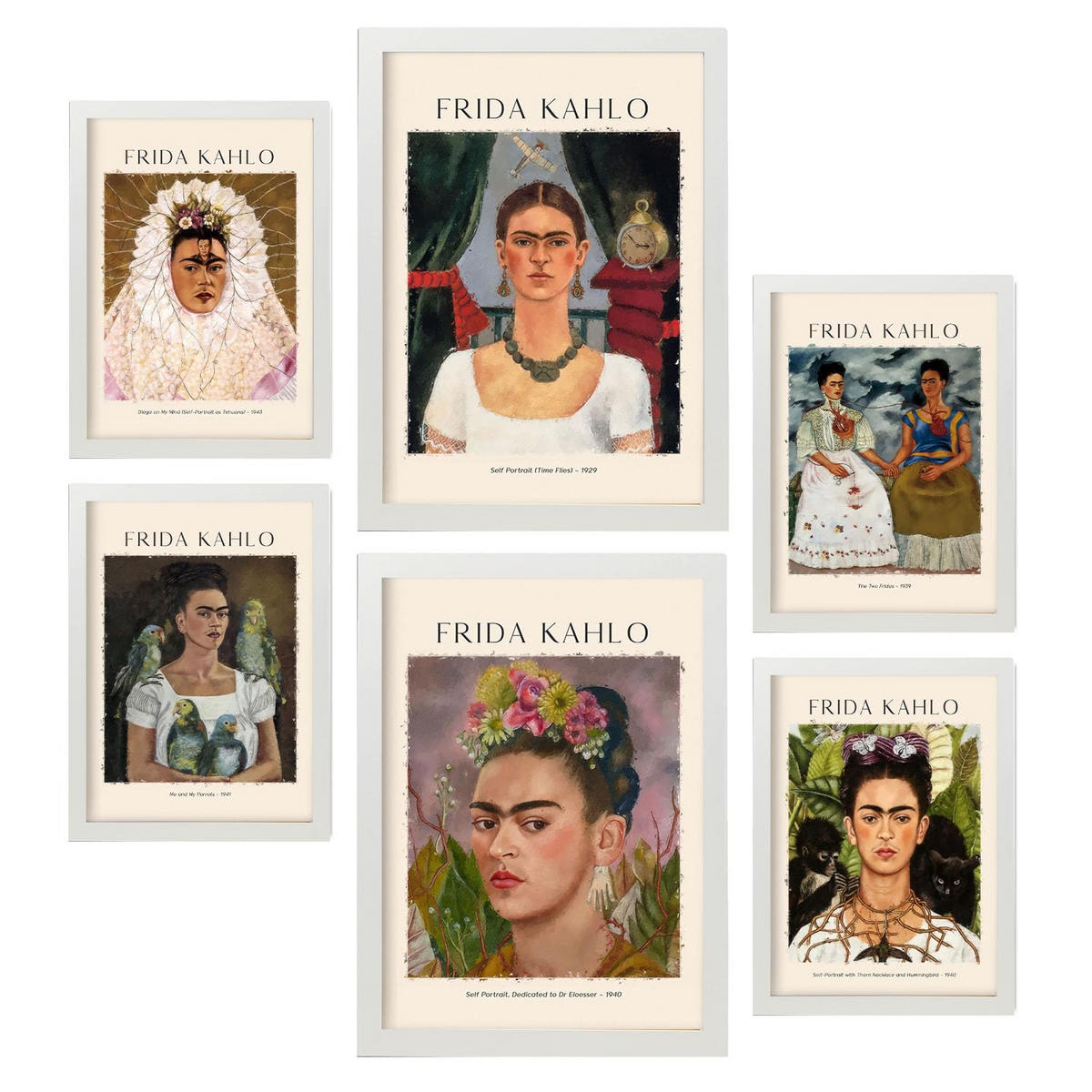 Nacnic POSTER Set Mit 6 Frida Kahlo Malergalerie A3 & A4 Weißer Rahmen