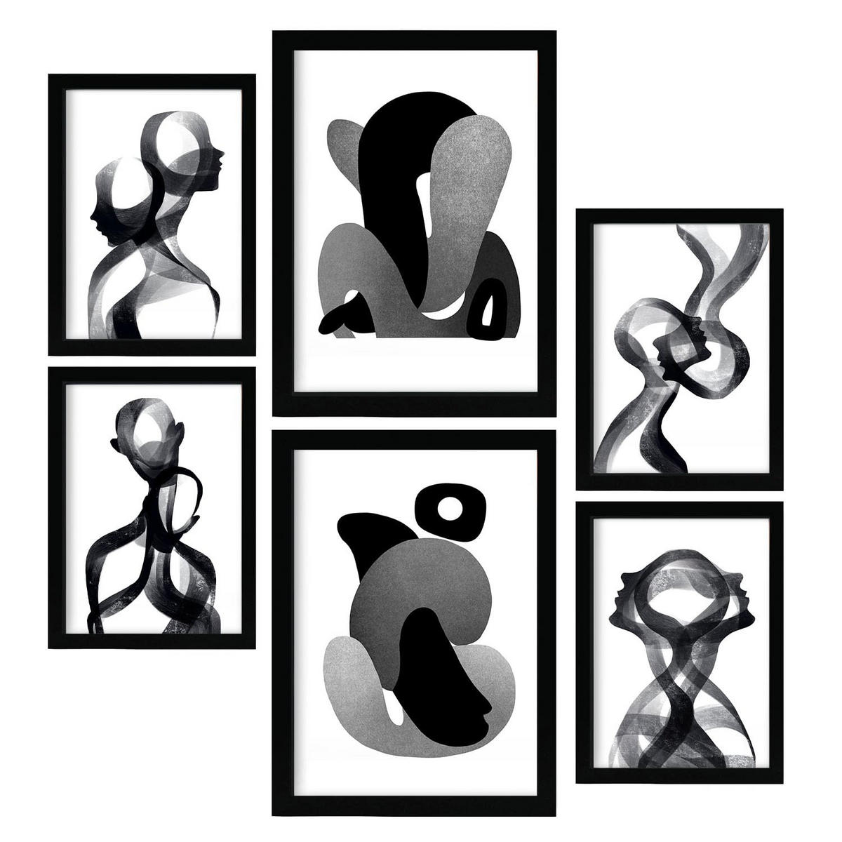 POSTER Set Mit 6 Gebogener Körper In Liebhaber Abstrakt Ästhetische Dekorative Gemälde Für Ihr Wohnzimmer Zuhause A3 & A4 Schwarzer Rahmen - Schwarz, Papier (29/3cm) - Nacnic