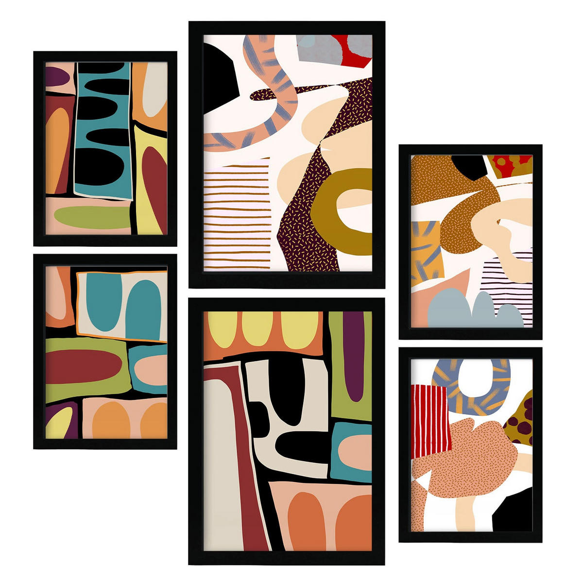 POSTER Set Mit 6 Glitzig Reich In Farbenfrohe Zusammenfassungen A3 & A4 Schwarzer Rahmen - Schwarz, Papier (29/3cm) - NacnicNacnic