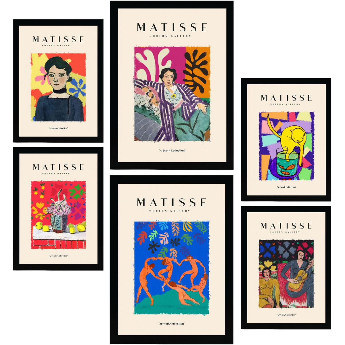 POSTER Set Mit 6 Henri Matisse Feier Drucke Des Fauvismus Und Der Abstrakten Kunst Für Innenarchitektur A3 & A4 Schwarzer Rahmen - Schwarz, Papier (29/3cm) - NacnicNacnic
