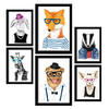 Nacnic POSTER Set Mit 6 Hipster Tiere Im Farbenfrohen Handgezeichneten Weißer Hintergrunddruck Mit Tieren In Menschlicher A3 & A4 Rahmen Aus Hellem Holz