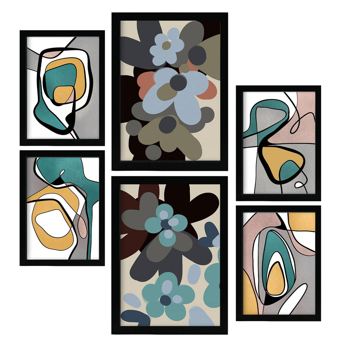 POSTER Set Mit 6 Hodgepodge Blume In Blume Zusammenfassung Ästhetische Dekorative Gemälde Für Ihr Wohnzimmer Zuhause A3 & A4 Schwarzer Rahmen - Schwarz, Papier (29/3cm) - Nacnic