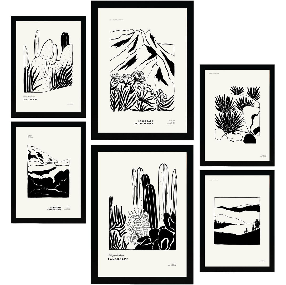 POSTER Set Mit 6 In Schwarzer Tinte Ecken Künstlerische Und Abstrakte Drucke Für Innenarchitektur A3 & A4 Schwarzer Rahmen - Schwarz, Papier (29/3cm) - Nacnic