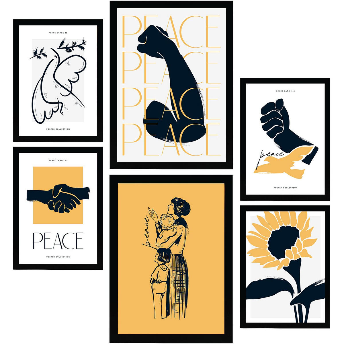POSTER Set Mit 6 In Schwarzer Tinte Frieden Und Kraft Kunstdrucke Von Meer Und Ozean Für Innenarchitektur A3 & A4 Schwarzer Rahmen - Schwarz, Papier (29/3cm) - Nacnic