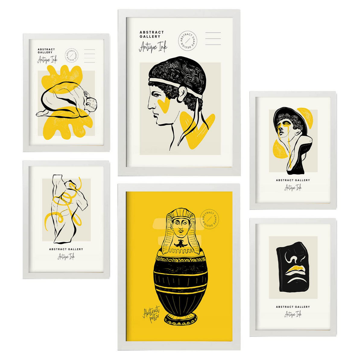 POSTER Set Mit 6 In Schwarzer Tinte Körperverehrung Von Der Griechischen Mythologie Inspirierte Drucke Für Innenarchitektur A3 & A4 Schwarzer Rahmen - Schwarz, Papier (29/3cm) - NacnicNacnic