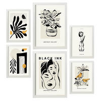 POSTER Set Mit 6 In Schwarzer Tinte Orientalisch Künstlerische Und Abstrakte Drucke Für Innenarchitektur A3 & A4 Weißer Rahmen - Weiß, Papier (29/3cm) - NacnicNacnic