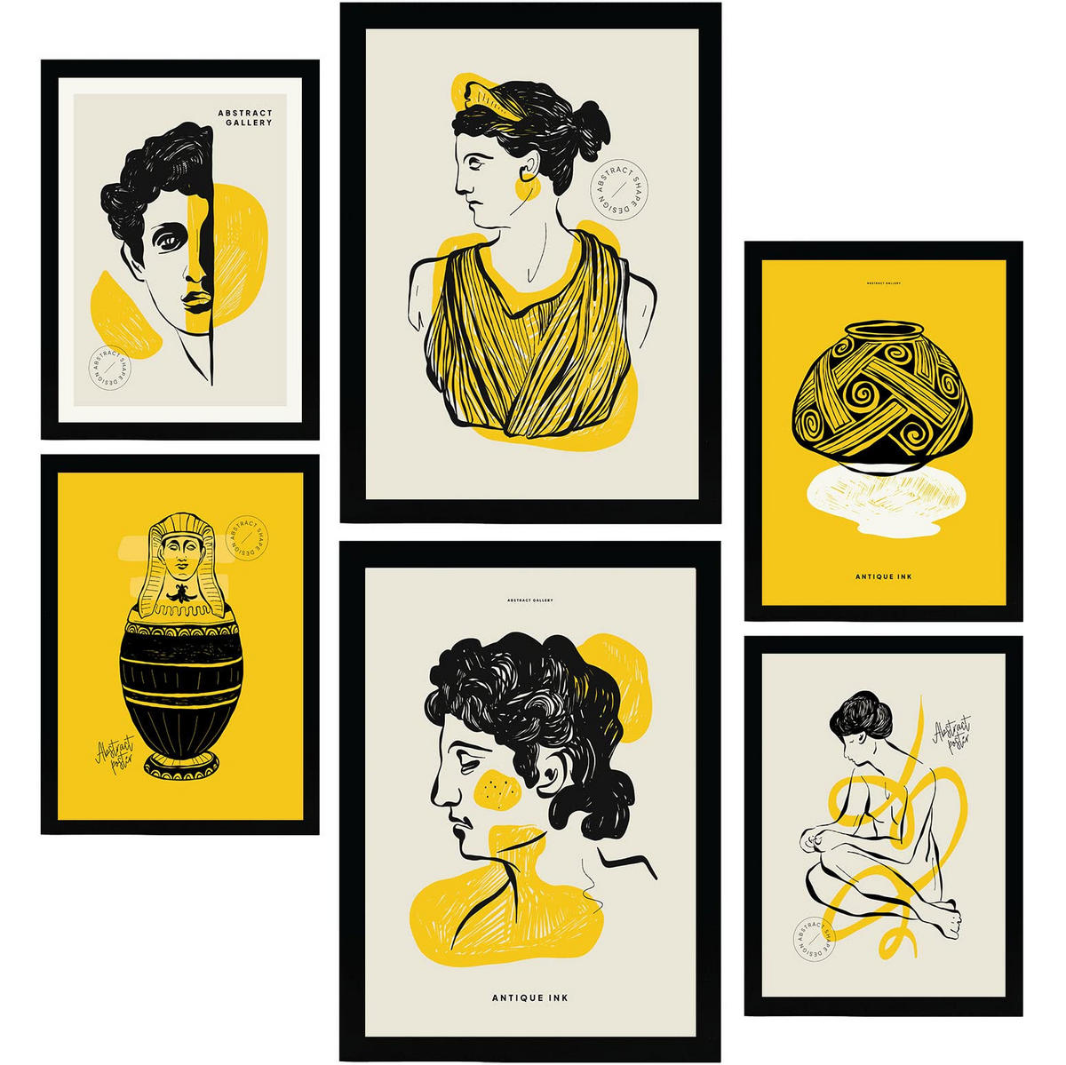 POSTER Set Mit 6 In Schwarzer Tinte Profile Von Der Griechischen Mythologie Inspirierte Drucke Für Innenarchitektur A3 & A4 Schwarzer Rahmen - Schwarz, Papier (29/3cm) - NacnicNacnic