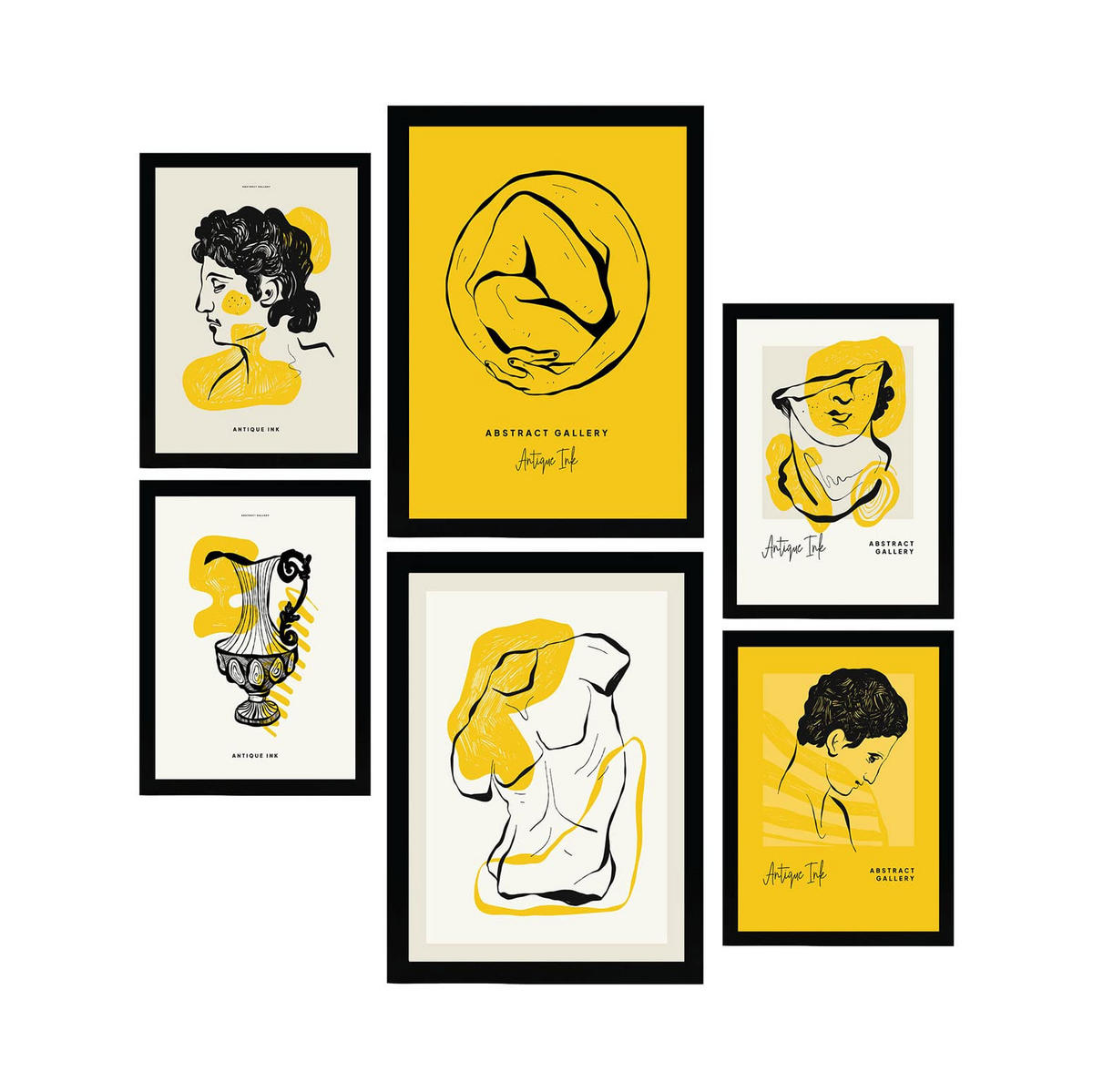 Nacnic POSTER Set Mit 6 In Schwarzer Tinte Umarmung Von Der Griechischen Mythologie Inspirierte Drucke Für Innenarchitektur A3 & A4 Schwarzer Rahmen