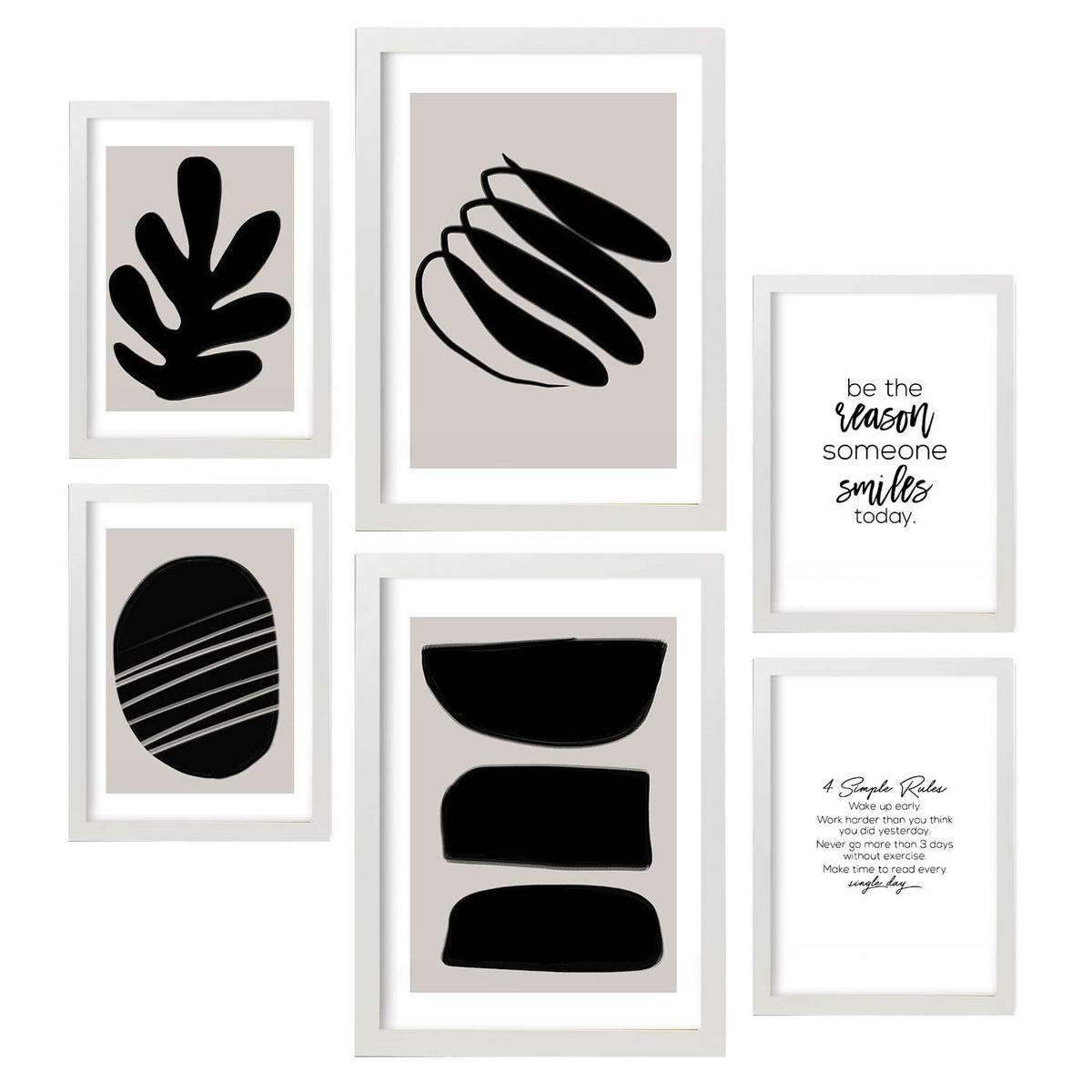 Nacnic POSTER Set Mit 6 In Schwarzweiss Sammlung A3 & A4 Weißer Rahmen